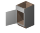 No shelfSubtract  1 1/2" from depth and width for available sink bowl openingDoor is hinged left and can be reversed in the field