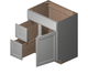 No shelf Allow for plumbing placement to clear drawers Drawers available on right or left side (please specify) Cabinet shown is right indicating drawers on the right side of the cabinet  Subtract 1 1/2" from depth and overall cabinet width for available...