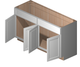 No shelf Top drawer on each side of sink bowl opening Subtract 1 1/2" from depth for available sink bowl opening Hinged as shown – can be reversed in the field Maximum sink bowl opening is 21" wide