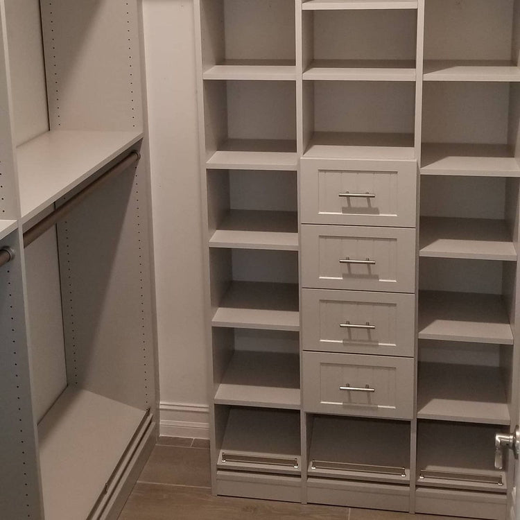 We thoughtfully curate your closet layout. We go over the layout, discuss any changes you would like and present the quotation. Please note we do not release these drawings until we go into contact. These are concept drawings only to procure the pricing estimate.