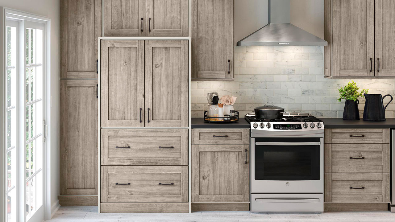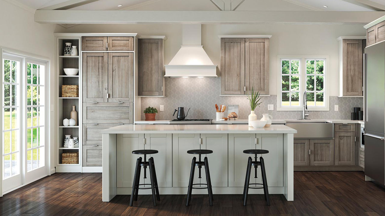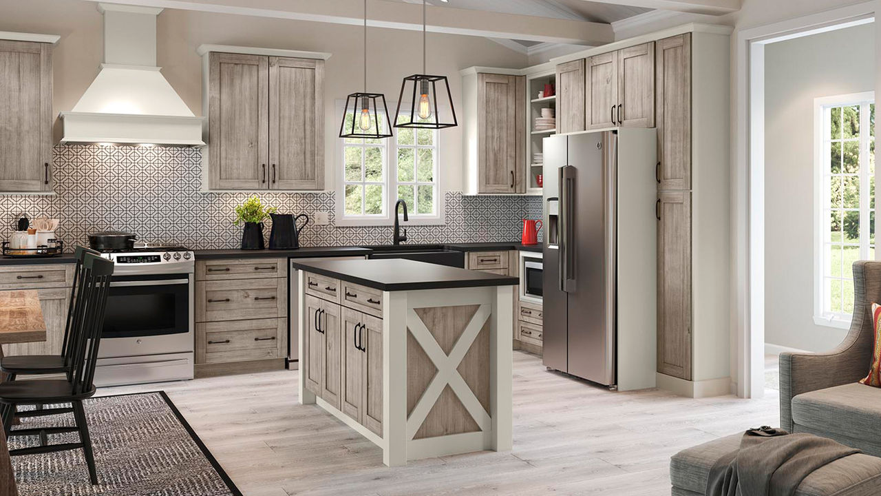 With a remarkable likeness to faded driftwood, this textured door style looks naturally amazing. Placed on a complementary Painted Harbor cabinet box, this textured door with its ridges and grooves captures the look of natural driftwood and can enhance any space in your home.