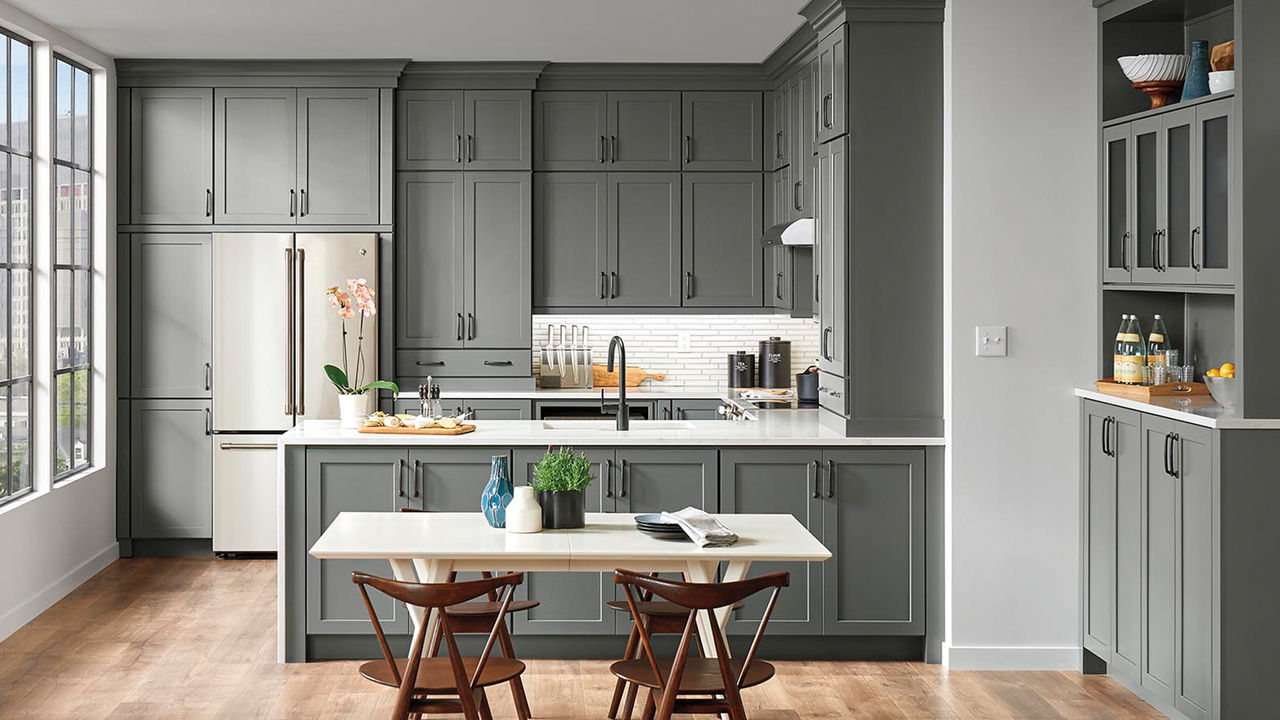 A dark gray color that will make a dramatic statement. Go moody with deep, monochromatic accents or brighten it up with pops of color.